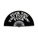 Cool yourself in style with this in.Fuck You You Fuckin Fuckin. large-sized folding hand fan. Simple and fun with just the right attitude! Made of glossy bamboo ribs and high-quality satin material.