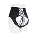 - Six adjustable elastic bands connect front padding for precise dildo placement