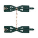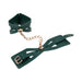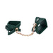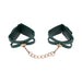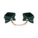 Get wrapped up in something irresistible. These emerald green cuffs feature dramatic cutout detailing to reveal more skin and spark more intrigue. Lined for softness and designed for visual seduction, they're as comfortable as they are commanding. Use them to bind wrists together or attach to other Indica items for a coordinated scene. The gold chain and hardware add just the right touch of luxury to every surrender.
