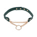 A quiet symbol of devotion, worn boldly or tucked beneath your collar. The Indica Day Collar blends soft emerald faux leather with rich gold hardware for a subtle yet striking everyday accessory. Designed with extra snaps for a more inclusive fit, this collar is adjustable, comfortable, and perfect for all-day wear–whether you're out and about or staying in control behind closed doors.